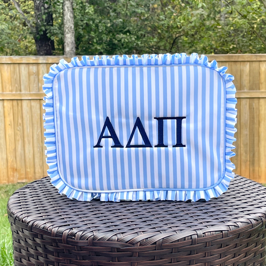 Alpha Delta Pi Stripe Ruffle Cosmetic Bag