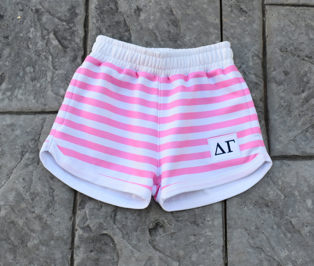 New! Delta Gamma Pink Stripe Sweat Shorts